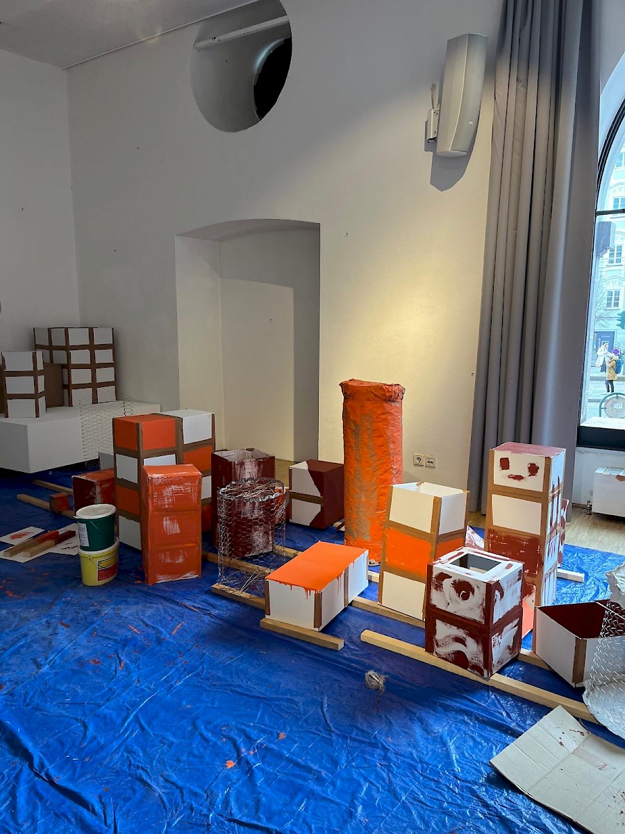 Zum Ausstellungs- und Tagungsformat Lets talk about...sharing befassten sich Studierende in einer Intensivwoche mit der Idee des Raumteilers. Eine Auseinandersetzung mit Skulptur bedeutet immer auch eine Auseinandersetzung mit Raum. Im Zusammenspiel von Skulptur und Raum eröffnen sich grundlegende Fragen des dreidimensionalen Gestaltens: Wie verändert eine Skulptur den leeren Raum? Welchen Dialog gehen Skulptur und Raum ein? Wieviel Raum bleibt in der Skulptur übrig? Wo werden die jeweiligen Grenzen fransig? Neben den skulpturalen Aspekten werden wir auch soziale und politische Dimensionen untersuchen.